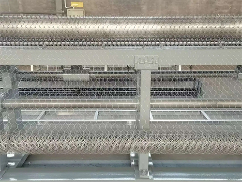 正反擰技術:正反擰技術(正捻+反捻)直接扭絞金屬絲成六角網,消除打簧環節,編織速度達65–70網孔/分鐘。